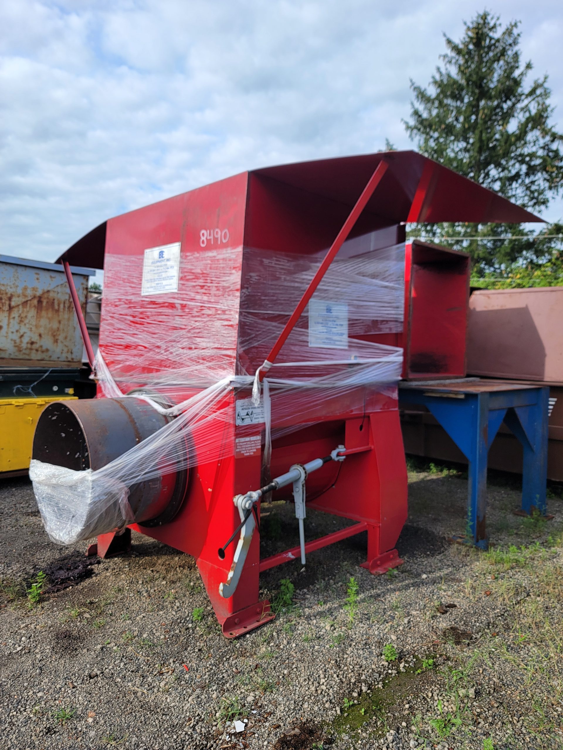 Single Shaft Shredder/Grinder, 100 HP, 52″x68″ Feed Opening, 15″ Rotor, 60 Cutters, 4.5 Cu yd Hopper
